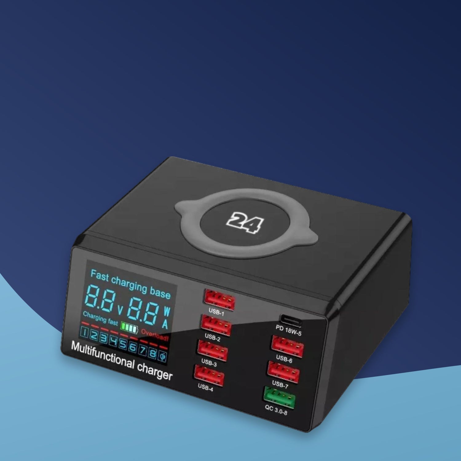 Dit pareltje wil iedereen op zijn/haar bureau of gewoon thuis. Geen losse opladers meer maar 1 krachtige multi-lader voor het opladen van alle telefoons, actioncams, zaklampen, koptelefoons etc. etc. en allemaal tegelijk.